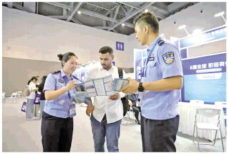 近日,浙江省杭州市公安局滨江分局联合高新区(滨江)商务局共同打造外籍跨境电商人才综合服务平台,破解外籍跨境电商人才“认定难、实习难、实训难、匹配难”等现实问题,为企业高速发展保驾护航。图为民警向跨境电商人才讲解服务平台操作流程。 本报记者 王春 摄