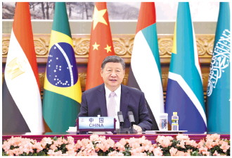 新华社北京9月8日电 记者杨依军 邵艺博 9月8日晚,国家主席习近平出席金砖国家领导人线上峰会,并发表题为《团结合作 砥砺前行》的重要讲话。 巴西总统卢拉主持峰会,俄罗斯总统普京、南非总统拉马福萨、埃及总统塞西、伊朗总统佩泽希齐扬、印度尼西亚总统普拉博沃、阿联酋阿布扎比王储哈立德以及印度、埃塞俄比亚代表与会。 习近平指出,当前,世界百年变局加速演进,霸权主义、单边主义、保护主义甚嚣尘上。金砖国家作为全球南方第一方阵,要坚持弘扬开放包容、合作共赢的金砖精神,共同捍卫多边主义,维护多边贸易体制,推进“大金砖合作”,携手构建人类命运共同体。 习近平提出3点建议: 第一,坚持多边主义,捍卫国际公平正义。多边主义是人心所向、大势所趋,是世界和平与发展的重要依靠。我提出全球治理倡议,旨在推动各国携手行动,构建更加公正合理的全球治理体系。要坚持共商共建共享,维护以联合国为核心的国际体系和以国际法为基础的国际秩序,夯实多边主义根基。积极推进国际关系民主化,提升全球南方国家的代表性和发言权。通过改革完善全球治理体系,充分调动各方资源,更好应对人类社会面临的共同挑战。 第二,坚持开放共赢,维护国际经贸秩序。经济全球化是不可阻挡的历史潮流。各国发展离不开开放合作的国际环境,谁也不能退回到自我封闭的孤岛。要坚定不移推动构建开放型世界经济,在开放中分享机遇、实现共赢;维护以世界贸易组织为核心的多边贸易体制,抵制一切形式的保护主义;倡导普惠包容的经济全球化,将发展置于国际议程的中心位置,让全球南方国家公平参与国际合作、共享发展成果。 第三,坚持团结合作,凝聚共同发展合力。金砖国家人口占世界近一半,经济总量约占世界30%,贸易总额占世界五分之一。金砖国家合作越紧密,应对外部风险挑战的底气就越足、办法就越多、效果就越好。中方愿同其他金砖国家一道,落实全球发展倡议,推进高质量共建“一带一路”,发挥各自优势,深化务实合作,在经贸、金融、科技等领域打造更多合作成果,让“大金砖合作”基础更牢、动能更足、影响更大,更多更好惠及各国人民。(讲话全文另发) 与会领导人表示,当前,单边主义和霸凌行径冲击国际秩序,国际法和国际规则受到威胁,贸易成为干涉别国内政的工具,严重影响世界和平与发展。金砖国家要加强团结协作,携手应对危机挑战,共同维护多边主义,维护自由开放的国际贸易体制,维护全球南方共同利益。各国领导人认为习近平主席提出的全球治理倡议切中要害,指明了完善全球治理的方向和路径。各方还同意继续就乌克兰危机、加沙冲突等热点问题保持沟通,发挥乌克兰危机“和平之友”小组作用,坚持解决巴勒斯坦问题的“两国方案”,维护中东地区和平稳定。 蔡奇、王毅等参加。