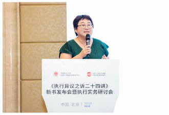 图为中国政法大学王毓莹教授在《执行异议之诉二十四讲》新书发布会暨执行实务研讨会上作新书介绍发言。 |
