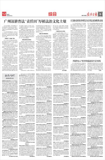 开设“法治直播间”,开展“直播带法”活动,新媒体普法工作被省司法厅在全省推广;成立全国首个“企业家法治观察团”,推动法治建设与企业经营深度融合,助力营商环境持续优化…… “八五”普法规划实施以来,广东省广州市以持续提升公民法治素养为主线,聚焦普法中心任务、突出普法重点对象、创新精准普法模式,精耕细作普法“责任田”,厚植法治文化土壤。 积极践行“六法融合”理念 前不久,南沙区司法局组织普法讲师团、普法志愿者队伍开展送法下乡活动,将法律服务送到群众“家门口”,为“百县千镇万村高质量发展工程”注入法治动能。 “我们树立以融合为‘纲’的工作理念,强化机制引领,推动普法与依法治理工作取得新成效。”广州市司法局有关负责人说。 坚持融合理念,推动全民普法融入发展大局。充分发挥法治固根本稳预期利长远的保障作用,将全民普法工作纳入广州市国民经济和社会发展第十四个五年规划;积极践行“六法融合”理念,将普法宣传融入全面依法治市、行政立法、依法行政、刑罚执行、公共法律服务、涉外法治全过程。 完善融合机制,积极构建“124”普法体系。“1”即强化市委全面依法治市委员会守法普法协调小组统筹协调功能;“2”即运用好“谁执法谁普法、谁管理谁普法、谁服务谁普法”普法责任制和“六法融合”两项工作机制;“4”即利用好融媒体平台、普法阵地、普法队伍、普法作品四类载体。 深化融合实践,将法治宣传融入法治建设全过程。创新引入第三方视角、成果展示等方法,持续开展全市国家机关“谁执法谁普法”履职报告和创新创先项目征集活动,实现国家机关普法责任制清单全覆盖;建立完善法官、检察官、行政执法人员、律师、公证员、人民调解员以案释法制度,注重运用典型案例开展法治宣传教育。 创新融合方式,将普法链条延伸至全领域各环节。探索推行“精准化+精品化”模式,组织普法责任主体单位在法定节假日等时间节点开展形式多样、内容丰富的普法宣传活动;创新探索“互联网+普法”“科普+普法”“非遗+普法”等融合方式,组织开展红色法治文化研学之旅、融媒体普法体验等活动,进一步扩大普法宣传覆盖面。 探索创新普法宣传模式 “律师您好,培训机构通过虚假宣传诱导我交钱报名,耽误孩子学习,我可以要求赔偿吗?”“可以。《最高人民法院关于审理预付式消费民事纠纷案件适用法律若干问题的解释》支持消费者主张惩罚性赔偿。”近日,荔湾区司法局华林司法所在“华林直播间”开展线上普法活动,“云”解答、线上互动等形式获群众点赞。 近年来,广州市坚持发扬首创精神,积极探索创新普法宣传模式,努力让法律知识“触手可及”。 首创“云端”送法,开辟网络普法新赛道。开设“广州市司法局法治直播间”,举办“局长带你‘沉浸式’打卡广州湾区中央法务区”等主题直播活动39场,观看人数达784万人次;依托广州市广播电视台法治频道,建设融“报、网、端、微、屏”于一体的“广州普法”融媒体矩阵,相关做法被省司法厅在全省推广。 首创“企业家法治观察团”,打造政企协同普法新范式。成立全国首个“企业家法治观察团”,精选27名各行业优秀企业家代表担任“法治前哨”,从立法、执法、司法、守法四个方面精准对接企业法治需求,进一步畅通政企沟通渠道。 首创普法护航广交会模式,持续优化法治化营商环境。推动“法治直播间”进驻广交会“涉外法律咨询服务港”,开展“律动湾区·法治护航”专题直播,观看人数达9万余人次;首创“真人+AI数字人”多语种法治直播模式,在线发布《广交会法律指南》14期,全网播放量达10万余次。 注重分层分类精准普法 近日,广州市中小学生“学宪法 讲宪法”演讲比赛和法治素养竞赛圆满落幕。比赛分为小学组、初中组、高中-中职组,最终每组各有约30名选手脱颖而出。 广州市注重分层分类精准普法,针对不同领域、不同群体采取不同的普法模式。 精准传播法治文化。常态化开展宪法晨读、全市中小学校“宪法教育大课堂”等活动,在近年来举办的全国学生“学宪法 讲宪法”活动总决赛中屡创佳绩;组织开展广州地区高校“‘典’亮青春 与法同行”普法创意短片大赛,进一步提高青少年参与普法工作的积极性。 精准服务发展大局。持续开展“服务大局普法行”专题普法宣传活动,在粤港澳大湾区建设、超大城市治理等重点领域加强普法宣传,实现普法工作与重点工作同频共振;聚焦食品安全、乡村全面振兴等重点领域开展专题普法宣传活动,不断增强普法工作的针对性和实效性。 精准保障对外开放。编印《外国人在粤法律法规指南》等实用手册,进一步提升境外人士在广州生活的便利性;召开“走出去”企业海外利益保护座谈会,帮助企业提高海外风险防控能力;组织开展领事保护线上宣讲活动,助力涉外法治建设;组建涉外法律服务团队,连续四届进驻广交会,为全球展客商提供优质高效的法律服务。 精准提升法治素养。抓住“关键少数”,建立各级党委(党组)理论学习中心组学法、党政主要负责人年度述法等制度;聚焦妇女、留守儿童、老年人、残疾人等群体,为其“量身定制”普法菜单;贯彻落实《青少年法治教育大纲》,保障青少年法治教育计划、课时、教材、师资落实到位。 打造