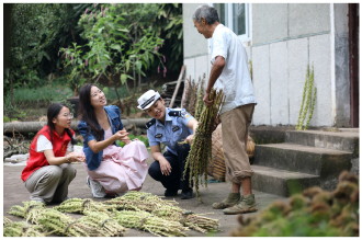 近日,安徽省舒城县公安局交管大队联合舒茶派出所进村入户,向村民们宣传秋收期间交通安全知识。图为民警提醒农户农用车禁止载人等相关规定。 本报通讯员 王可海 摄