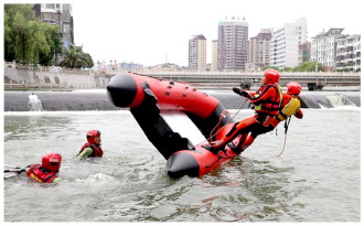 近日,江西省萍乡市消防救援支队举办全市消防救援队伍水域救援技术培训班,通过抛绳救援、活饵救援、动力操舟训练、翻船自救、滚水坝脱困等科目演练,全面提升消防救援队伍水域救援专业技术和作战能力。图为培训演练现场。 本报记者 黄辉 本报通讯员 李科 摄