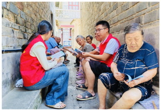 连日来,江西省靖安县司法局组织普法志愿者深入社区网格,走巷串户向群众宣传反诈骗、防火灾、防毒品及交通安全等安全知识。图为普法志愿者近日在靖安县南门社区向群众宣讲反诈知识。 本报记者 黄辉 本报通讯员 舒鹏 熊诗云 摄
