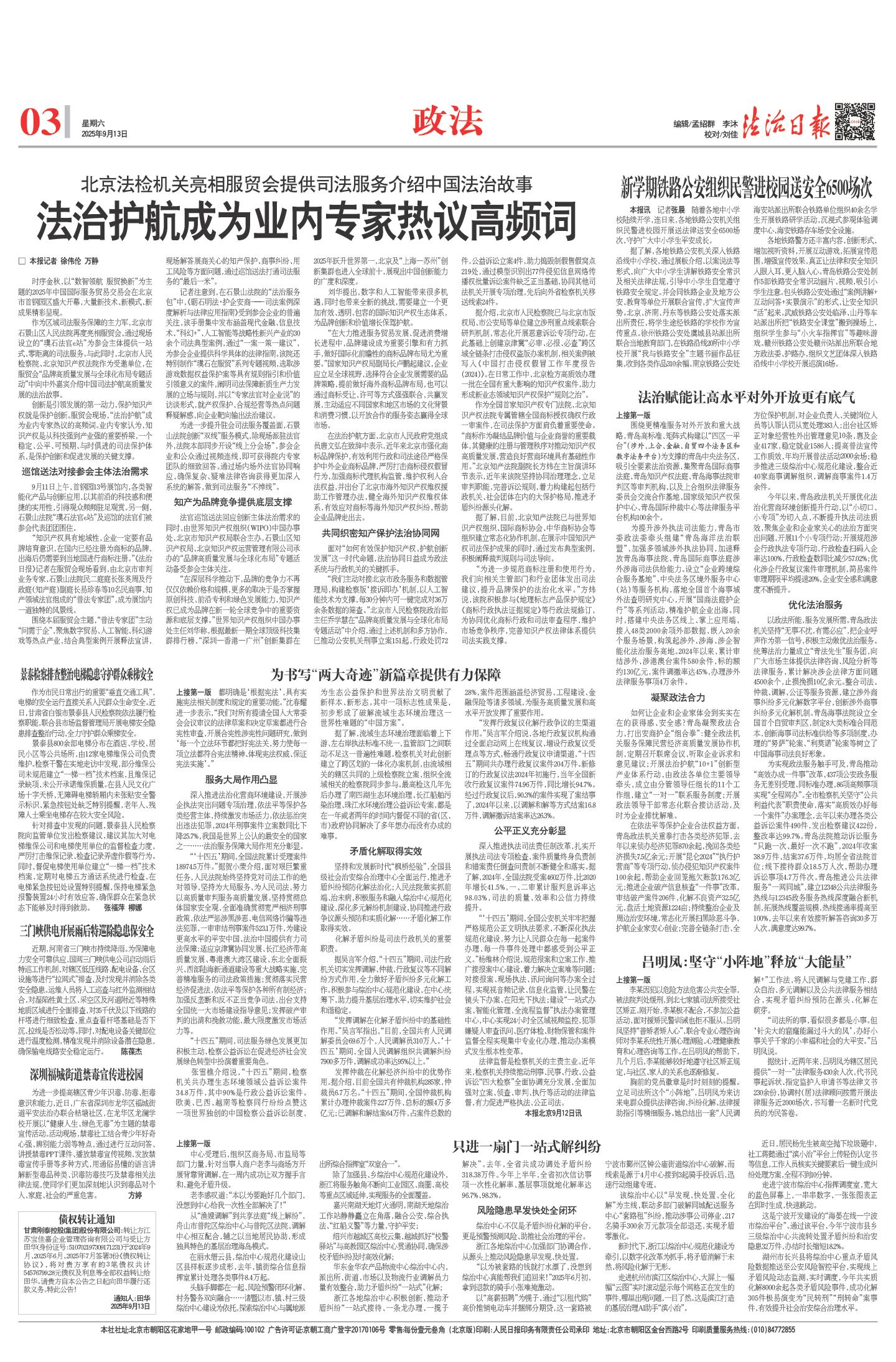 法治护航成为业内专家热议高频词 (2025年09月13日) |