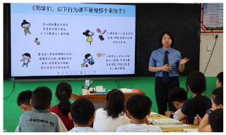 近日,河北省成安县人民检察院检察官走进县实验小学,开展“抵制不良话术,守护文明校园”主题法治教育活动。图为检察官向孩子们讲解相关法律知识。 本报记者 周宵鹏 本报通讯员 冯华年 王亚伟 摄