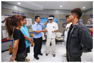 近日,山东省济南市公安局市中分局七贤派出所社区民警在济南大学警务室向学生开展禁毒宣传。图为民警利用VR体验设备讲解禁毒知识。 本报通讯员 郝鑫城 摄