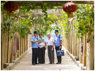 ▲ 连日来,乌鲁木齐铁路公安局喀什公安处组建“田间巡逻队”,对铁路沿线重点区域开展动态巡查。同时,各站派出所民辅警深入田间地头、村居广场等,对群众开展普法宣传。图为民警为群众讲解预防电信网络诈骗知识。 本报记者 潘从武 本报通讯员 李明聪 摄