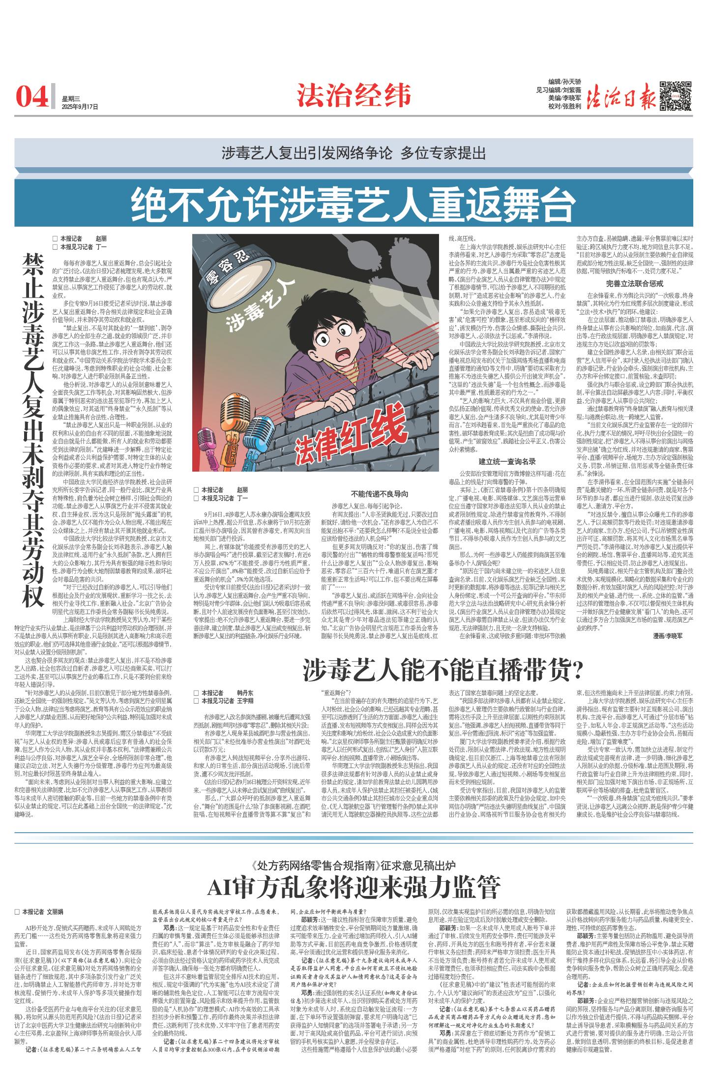 禁止涉毒艺人复出未剥夺其劳动权