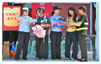 图① 9月9日,山东省临沭县人民法院干警联合物业纠纷调解中心工作人员开展物业法律法规宣传进社区活动。