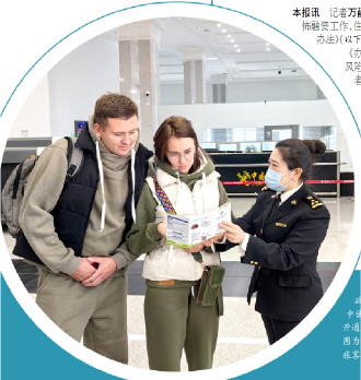 针对我国决定自2025年9月15日至2026年9月14日对俄罗斯试行免签政策,满洲里海关所属满洲里十八里海关迅速反应、全面布局,多措并举为中俄免签政策的落地实施保驾护航。该关创新实施“三增三快”措施,通过增开通道、增派人员、增加引导,实现俄罗斯旅客快速验放、快速处置、快速通关。图为9月15日对俄免签政策实施首日,满洲里十八里海关关员对进境俄籍免签旅客开展政策宣介。 本报通讯员 方清华 徐欣欣 摄