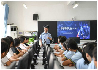 9月17日,安徽省含山县公安局花山派出所组织民警来到含山第三中学开展以“网络安全为人民 网络安全靠人民”为主题的宣传活动。图为民警向学生讲解网络安全知识。 本报通讯员 冯善军 摄