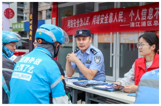 图② 近日,江苏省淮安市公安局清江浦分局联合清江浦区总工会共同开展“2025年国家网络安全宣传周”集中宣传活动。活动现场,民警向外卖骑手、环卫工人等群体讲解网络安全防范要点、个人信息保护技巧等知识,揭示网络安全风险,鼓励大家主动做网络文明的践行者与守护者。图为民警向外卖骑手讲解如何保护个人信息。 本报记者 罗莎莎 本报通讯员 叶前昶 摄