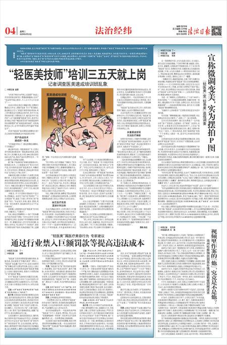 北京中医药大学卫生健康法治研究与创新转化中心主任邓勇向记者介绍,“轻医美”是介于手术整形和生活美容之间的专业医疗美容项目。因此根据相关规定,从事“轻医美”操作的人员必须具备医师资格证和医师执业证,并在卫生主管部门备案注册,注册在工作的医疗机构持证上岗。
