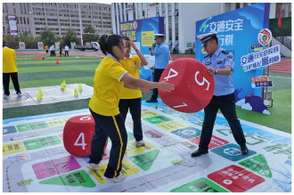 图① 内蒙古自治区鄂尔多斯市委政法委近日组织政法干警,在康巴什区第二中学举办“党建引领护成长·法治护航润校园”主题活动,开展法治宣传教育。图为民警与学生一同进行交通安全飞行棋游戏。 本报记者 刘玉璟 本报通讯员 吴啊日查 摄