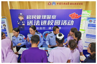 图② 9月22日,辽宁出入境边防检查总站民警走进中国医科大学,开展送法进校园活动。图为民警为师生普及校园安全知识。 本报通讯员 郝洪伟 摄