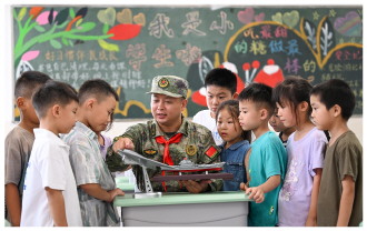 近日,安徽省合肥市长丰县水湖镇人武部开展国防教育进校园主题活动。图为水湖镇人武部走进志和小学,开展“心系国防 强国有我”主题活动,增强学生国防意识,厚植爱国情怀。 本报通讯员 徐伟 摄