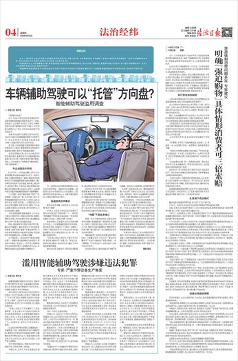 □ 本报记者 韩丹东 随着智能辅助驾驶技术的普及,驾驶员在行驶中使用各种手段、设备规避系统监测,低头玩手机甚至躺平睡觉的行为时有发生,给道路交通安全带来严峻挑战。 多位专家近日接受《法治日报》记者采访时指出,这些行为的核心危害在于彻底背离了“人机共驾”原则,将辅助系统异化为危险的“无人驾驶”。当前技术远远无法应对道路全场景风险,此类行为不仅高风险,且已触碰法律红线。 “其核心风险在于完全解除了人的监督职责。”北京交通大学北京综合交通发展研究院教授郑翔说,当前智能辅助驾驶系统能力有限,必然存在接管延迟或误判路况的风险。将一吨多重、疾速行驶的车辆置于无人监管状态,是对公共安全的极大漠视。 北京星权律师事务所副主任甄景善进一步解释道,市面上智能驾驶系统仅为辅助驾驶,需驾驶员全程监控并准备随时接管。在睡着或使用作弊设备状态下,驾驶员遇突发情况根本无力及时应对,极易引发车毁人亡的严重交通事故。 受访专家明确指出,驾驶员此类行为或面临行政、民事及刑事三重风险。 郑翔分析,此类行为首先直接违反道路交通安全法及其实施条例中关于禁止疲劳驾驶、驾驶员必须全程保持注意力集中的规定;其次,也违反了所有配备智能辅助驾驶功能的车辆(国内目前最高为L2/L3级)的用户手册,手册要求驾驶员必须始终将手放在方向盘上或准备随时接管车辆,车企对此类行为导致的事故可免责;再者,如果引发事故且造成人员重伤、死亡或重大财产损失,可能构成交通肇事罪。 甄景善同样指出,有此类行为的驾驶员会受到罚款、记分等行政处罚,若后果严重,将面临刑事处罚。 为何一些车主会铤而走险? 郑翔认为,这是用户对责任边界的认知错误与车企宣传误导共同作用的结果。本质上与使用安全带插扣等行为一样,都是对驾驶风险的轻视,使用“假手”、电容感应绒布等只是新技术条件下的新表现。 甄景善补充,一些车主使用作弊设备,有当前识别系统过于机械、不够灵活便利导致用户体验不佳的原因,但根本原因是驾驶人员误解智能驾驶功能,过度信任技术,将智能辅助驾驶等同于“无人驾驶”。 受访专家介绍,规范此类行为,海外经验可供借鉴。 “欧盟2023年7月实施新的车辆通用安全法规(GSR),要求即日起新发布车型新上路车辆标配DMS功能;2024年7月7日起,新申请欧盟整车型式认证的M类和N类车辆,需搭载满足(EU)2023/2590法规要求的先进驾驶员分心报警系统(ADDW),该系统不仅要监测注意力分散和疲劳,还需识别‘驾驶员可用性’。”郑翔说。 甄景善提到,德国通过一系列法律为自动驾驶汽车上路设定严格条件,明确自动驾驶系统故障导致事故时汽车厂家的责任形式;还制定相关准则,将人类安全置于财产安全和动物安全之上。英国在部分地区试点应用AI智能摄像头系统,利用算法分析驾驶员是否存在违规行为。这些经验都值得参考。 在我国,相关标准正在加快落地。郑翔介绍,我国2023年5月发布《驾驶员注意力监测系统性能要求及试验方法》,将DMS纳入推荐标准;2023年9月,中汽中心发布2024版中国新车评价规程(C-NCAP)征求意见稿,首次将DMS纳入项目分值,DMS强制使用在我国预计很快落地。目前,公安机关也正严查平台售卖汽车驾驶作弊设备行为。 对于如何构建有效的防护体系,两位专家提出了多维度建议。 郑翔认为,立法层面,应在修订的道路交通安全法中,纳入《驾驶自动化技术研发伦理指引》基于《汽车驾驶自动化分级标准》划分的责任主体规则,明确不同驾驶自动化阶段的责任主体;技术层面,可借鉴欧盟做法,推动DMS强制标准落地,提高识别准确度;执法层面,市场监管部门严查作弊设备生产售卖,明确个人违法使用智能辅助驾驶的法律责任并加重处罚;用户教育层面,禁止企业虚假宣传,加强自动驾驶汽车使用规则宣传教育。 甄景善建议,加大宣传教育力度,政府、行业协会、主流媒体普及智能辅助驾驶知识,车企在车辆交付前后做好沟通培训,确保用户清晰认识智能辅助驾驶系统;车企升级技术,引入更先进、多样化的驾驶员监控系统,提升违规行为识别能力;严格落实法律责任,加大立法力度,执法监管部门加大查处力度;加强作弊设备管控,严肃查处生产销售商家,截断流转渠道、清理生产土壤。 “当前最重要的是将宣传教育落实到位。”甄景善说,只有用户建立起正确认知,才能从根本上减少不当行为。 展望未来,郑翔对技术发展持乐观态度。他认为,当技术达到完全无人驾驶阶段,“分心/作弊”问题将自然消失。甄景善则提醒,如果用户不转变认识,过分依赖技术,旧问题未必能彻底解决,新风险也可能出现,因此必须提前通过立法、技术、执法和教育做好防范。