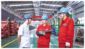 近日,国网浙江电力红船共产党员服务队走进浙江省龙泉市经济开发区塔石工业区,开展保护电力设施宣传活动。图为服务队队员向园区企业负责人讲解《电力设施保护条例》相关规定。 褚津津 摄