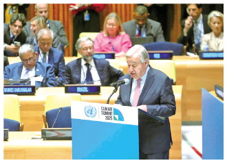 当地时间9月24日,美国纽约,联合国秘书长古特雷斯在联合国气候变化峰会上发表讲话。 CFP供图