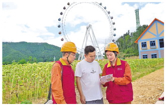 近日,国网衢州供电公司以安全生产治本攻坚三年行动为契机,在浙江省衢州市常山县何家乡溪东村文化广场设立宣传点,开展安全用电宣传活动。图为该公司红船青年突击队队员向村民讲解安全用电知识。 董瑞恒 摄