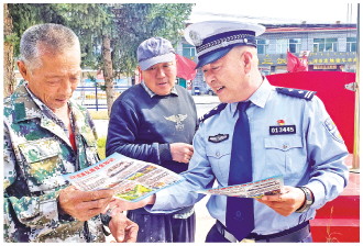 内蒙古自治区和林格尔县公安局交通管理大队近日组织民警走进新店子村,以“美丽乡村行”为主题,开展道路交通安全普法宣传活动。图为民警向村民宣讲农村道路交通安全知识。