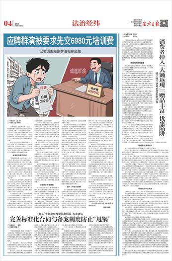 “日薪5000元,急招‘霸总爹’!”近日,一则短剧招募中老年演员的消息在社交平台广泛传播,点燃了不少银发族的“演员梦”。与此同时,一些社交平台和兼职群中,类似“日薪300元”“无需经验,时间自由”“与明星近距离接触”的群演招募信息层出不穷,吸引了不少希望体验演艺生活或兼职挣钱的普通人。 然而,《法治日报》记者调查发现,这个看似门槛低、机会多的群演市场,实则暗藏诸多不规范、不透明的灰色操作。不少应聘者尚未踏入片场,就被各种巧立名目的收费“劝退”;即便成功进组,也常常面临超时工作、克扣薪酬、权益保障缺失等问题。 参演前得高价培训 “短剧群演招募,100元至300元一天。”今年8月,湖北武汉的王伟在短视频平台上刷到这则同城招聘信息,立即产生了兴趣。门槛不高、时间灵活,对于待业在家的他来说,“看上去是个不错的机会”。 按照对方指引,王伟来到指定地点面试。一位工作人员热情接待了他,并带他逐一参观了公司的各个部门。剪辑部、服装部,墙上挂满了团队合照、工作人员与知名演员的合影……这一切都让王伟觉得“挺正规”。 参观结束后,王伟被带入房间进行面试。面试官先让他做自我介绍,随后要求他展示一段才艺。过程中,面试官手持纸笔,煞有其事地为其表现打分。表演结束,面试官简单点评了几句,随即话锋一转说:“素人演员要想在镜头前不紧张、少挨导演骂,最好先接受公司的专业表演培训。” 对方随即给出方案:5天培训收费3980元,7天培训收费6980元,并承诺培训结束后会为学员推荐演戏机会。王伟顿时明白:“可能不是在招群演,而是为了卖课。” 这份警惕让王伟及时抽身,但并非所有人都如此清醒。当骗局披上“签约保底”“演够退款”的外衣,并将金额控制在千元以内时,迷惑性便大大增强。陕西西安的应届毕业生何佳就掉入了这样的陷阱。 今年6月,何佳在社交平台上看到招募群演的信息,抱着暑期兼职的想法,她先后与两家公司约了面试。第一家公司一进门就让她填写详细表格,包括学校、家庭住址、身份证号码甚至家人联系方式。面试后,工作人员提出,群演需支付基础培训及服装道具等费用,要连续3个月每月交纳799元服务费才能获得拍戏机会。何佳觉得太贵,便拒绝了。 她随即前往第二家公司面试,流程如出一辙,但条件明显“友好”许多:只需一次性交纳800元,公司承诺每月保底安排5场戏,薪资日结,半年内演满30场即可全额退款。何佳盘算着“800元很快就能赚回来”,便签下协议交了钱。 回家后,她上网查询才发现不少网友有过类似经历——公司会故意设计繁琐流程,如要求演员先去公司取戏服,再到几十公里外的片场,拍完再送回公司,以此抬高时间与交通成本,使演员难以完成场次,最终拒绝退款。 意识到可能被骗后,何佳报警求助。在警方调解下,公司同意退还60%费用,但退款过程依然艰难。“承诺七个工作日到账,结果十几天毫无动静。”经过她20多天反复催促与交涉,才终于结束这场“拉锯战”。 记者在调查中还发现,不少中老年人出于“圆梦”心理,甚至主动寻求付费参演的机会。一位群演向记者透露:“同剧组一位阿姨交了380元,结果只是当了个背景板,连脸都没露。” 试镜要求衣着裸露 有受访者反映,有人打着“剧组招募”的幌子,将目标瞄准涉世未深的年轻女性,以试镜为由实施性骚扰,其手段隐蔽、话术娴熟,形成一套具有诱导性的“套路”。 山东济南的大三学生宋觅曾在第一次尝试群演时,遭遇一场让她感觉“很不对劲”的招募。对方在私聊中明确提出视频试镜要求“上身浅色吊带”“下身超短裙”“不能涂抹身体素颜霜”,并需录制一段自我介绍。对方还要求她在视频中回答“身上是否有文身”等问题,并称“视频审核通过后才能安排线下面试”。宋觅认为此事不妥,立即退出群聊并删除了联系人。 浙江杭州的许婷则经历了更为露骨的“试镜陷阱”。在看到群聊中的招募信息后,她主动联系了招聘方。对方首先要求她提供一张“紧身衣服短裤高跟鞋”的全身照。当时许婷身在室外,衣着并不符合要求,对方不仅盘问其具体去向,还要求她“立刻回家换衣服拍照”,否则将错失机会。 在许婷勉强提供照片后,对方的要求逐渐升级:先是让她背对镜头、穿着高跟鞋做扎马步姿势拍照;当她表示质疑时,对方转而指责她“不尊重面试官”“缺乏信任”;接着又以“需要挑选能完成扎马步戏份的女生”为由,诱使她继续配合,不断发出指令“腿再往外点,再蹲下去点”“涂上鲜艳口红,穿上丝袜,坐在地上将脚底正对镜头,双手比耶”。 随后进入所谓的“试戏”环节,对方先问许婷是否会跳舞,要求录制舞蹈视频。许婷一一照做后,对方突然打来视频通话,在通话中开门见山地问她“能接受什么样的拍摄尺度”,并以“爱情戏需要”为借口,试探她是否愿意接受穿着比基尼甚至只剩内衣裤的表演。 “他在视频里还问我,‘现在脱到只剩内衣裤行不行’。”许婷回忆,她拒绝后,对方竟反问,“在视频里都放不开,到了剧组只剩内衣裤,你能放开吗?” 这段经历让她深感被侵犯,事后将过程发到社交平台,才发现自己并非个案。有在横店的群演私下告诉她,确实有些人“专门性骚扰想做群演的青年男女”。 超时工作克扣薪酬 除了前期招募环节可能存在骗局,群演在实际拍摄过程中面临的权益侵