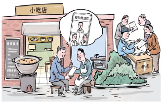 清晨五点半,江城武汉的街巷还在沉睡,临街一家沙县小吃店的卷帘门已经升起,店主林卫国(化名)一边熟练地生火、熬高汤,一边抽空核对着外卖平台上的预约订单。一番忙碌过后,林卫国顺势坐在灶台前,凝视着锅中缓缓蒸腾的热气,思绪也跟着飘回到刚来打拼的那几年…… 林卫国的老家在福建省三明市沙县区夏茂镇,这是一座千年古镇,也是沙县小吃的发源地。2015年,他离开故乡,与同乡李军(化名)在湖北武汉合开了一家小吃店,营业执照上写的是李军的名字。随着外卖行业的兴起,他们也在平台注册成为外卖商家,账户绑定了李军的银行卡。 2019年,李军想独自到浙江开店,就与林卫国达成了退股协议,但外卖账户一直未能变更绑定信息。自2019年11月底至2021年11月,该账户陆续产生了近10万元的营业额,这成了林卫国“看得见却摸不着”的数字。 “那段时间,每天看着数字增长,心里就像压了块大石头。”林卫国回忆道。他打电话给李军,李军说自己已经退股,一切事务与自己无关。他又联系外卖平台,对方回复说因为申请人与工商登记信息不符,无法办理变更业务。 在最煎熬的时候,家乡推出的一项工作机制让林卫国眼前一亮。 2021年,沙县区人民法院针对异地小吃业主推出了“一城一法官”机制,根据沙县小吃门店分布特点,在全国33个中心城市配备了33名员额法官(法官助理),开展涉小吃业主案件调处、司法确认及法律咨询等工作。 2022年4月,林卫国按照公开的联络电话找到了负责武汉地区的“城市法官”廖应琼。电话那头,廖应琼耐心地听完了来龙去脉,轻声开导林卫国:“别着急,林老板,这个问题就像扁肉(馄饨)破了皮、露了馅,总能找到补救的办法。” 这句形象的比喻,让林卫国紧绷的心情顿时轻松了不少。在廖应琼的指导下,他通过“移动微法院”平台提交了立案申请。第二天,他就接到了沙县法院的调解通知,称李军愿意配合调解,且整个调解过程均可在线上完成。 调解成功后,小吃店的经营逐渐恢复正轨,林卫国渐渐忘了这段“小插曲”。直到去年冬天,店员小张遇到了一件烦心事——沙县老家的邻居在盖房时占了他家的宅基地,两家人为此吵得不可开交。看着小张满面愁容、无心上班,林卫国想起了自己的遭遇,建议他也联系“城市法官”来帮忙。一周后,小张便坐在了小吃店门口的小板凳上,开启了视频调解。 屏幕那端,法官带着调解员及村干部对盖房现场进行了实地勘测,确认侵占事实存在,邻居也无话可说,当场承诺拆除越界部分。小张搓着手激动地说:“这要是以前,得专门回老家折腾半个月!现在好了,不耽误干活,还把事办成了。” 今年清明节,林卫国回乡祭祖,发现家乡的变化无处不在,乡亲们的法律意识也有了明显提高。 一天,林卫国来到社区广场散步,发现这里正举办一场“银发普法”活动,老人们围着几名法官和民警,正听得津津有味。 “法官同志,我昨天收到条短信,说我的医保卡异常,要点链接处理,这是真的吗?”一位满头银发的老人忽然举起手机问。年轻法官接过手机,仔细查看后用方言耐心解释:“阿公,这是典型的诈骗短信。您看,这个链接的网址很奇怪,正规的社保通知不会这样发。以后遇到这种情况,一定要先跟子女确认……” 更让林卫国欣慰的,还有下一代的变化。这次他回老家,上中学的女儿已经开始像模像样地分析起外卖平台的格式条款,说得头头是道。仔细一问,原来是“模拟法庭”开进了沙县的多所学校,在孩子们心中播下了法治火种。 “家中老小平安顺遂,我这心里别提有多踏实了,也想力所能及地做点什么。”林卫国说。回到武汉后,他把店里重新布置了一番,在收银台常备《常见纠纷解决指南》,方便顾客随手翻阅,外卖包装盒也印上了朗朗上口的反诈提示语,显眼又好记,小店转眼成了百姓身边的“普法阵地”。 夜幕降临,林卫国结束了一天的忙碌。他站在店门口,望着异乡依旧热闹的街道,心里涌起一股暖流。拿出手机,他在朋友圈写道:“平安就像这碗高汤的滋味,看不见摸不着,却能让每个在外打拼的人,都能吃上一口暖胃安心的热饭。” 漫画/高岳