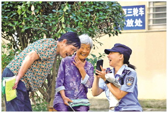 近日,安徽省宁国市公安局西津派出所金桥社区警务室民警在社区走访居民,开展反诈宣传。 本报通讯员 高鹏 摄