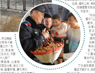 图① 民警开展铁路线路安全巡视检查。 图② 民警帮助铁路沿线农户在“和田玉龙号”列车上售卖农产品。 武陇慧 摄
