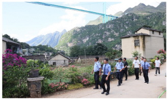 图为9月29日,贞丰县人民检察院检察官联合公安、行政部门工作人员走访花江峡谷大桥周边村落。 贞丰县人民检察院供图 |