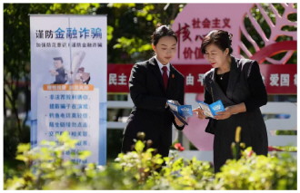 ▲ 黑龙江省富锦市人民法院干警近日深入社区开展预防金融诈骗普法宣传。干警通过向社区居民发放反诈宣传单,结合真实案例详细剖析诈骗分子作案手法,传授防骗口诀,帮助群众提升识骗防骗能力。图为干警在社区广场为居民讲解反诈法律知识。 本报通讯员 赵清元 摄