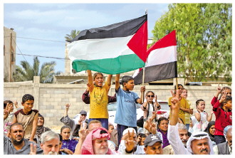 10月9日,在加沙地带中部代尔拜拉赫,巴勒斯坦民众在获悉加沙停火协议的消息后庆祝。 新华社发(里泽克·阿卜杜勒贾瓦德摄) |