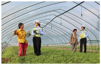 图① 近日,乌鲁木齐铁路公安局奎屯公安处民警深入辖区棉花种植区,向棉农开展铁路安全知识与法治宣传。图为民警向棉农宣传《新疆维吾尔自治区铁路安全管理规定》。 本报记者 潘从武 本报通讯员 唐泽 摄 图② 秋收时节,稻谷飘香。江西省分宜县公安局双林派出所组织民辅警深入田间地头,了解治安状况,调解矛盾纠纷,宣传安全知识。图为民警在田间走访。 本报记者 黄辉 本报通讯员 黄小军 摄 图③ 金秋十月,江苏省淮安市公安局淮阴分局交警大队全面启动“护航秋收”行动,深入田间地头开展形式多样的交通安全宣传。图为民警向村民讲解交通违法行为的危害。 本报记者 罗莎莎 本报通讯员 徐婷 摄