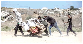图为10月11日,加沙地带南部的巴勒斯坦人经由以军指定通道萨拉赫丁公路返回北方。 新华社发