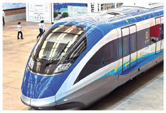 图为九月十八日,我国首列完全自主知识产权的中国标准智能市域列车在山东青岛正式亮相。该列车关键核心技术全面自主化,并创新搭载十余项智能核心技术。