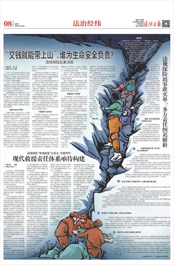 □ 本报记者 赵丽 □ 本报见习记者 丁一 10月5日中午,青海省门源回族自治县警方接警称,多名徒步者擅自进入祁连山冷龙岭,在老虎沟高海拔区域被困。经两省联动拉网式搜救,251人被安全转运,1人因失温与高原反应不幸遇难。官方通报指出,此次活动属“私下组织、未经许可进入未开发区域”的违规徒步。 值得关注的是,我国针对非法组织户外活动的惩罚性赔偿机制正逐步完善。各地司法机关与主管部门正通过民事公益诉讼、行政追缴等方式强化执法。 9月16日,陕西西安公开审理一起个人非法组织穿越秦岭核心保护区的民事公益诉讼案,系该省首次对此类行为提起公益诉讼。法院判令被告立即停止组织穿越活动,承担生态环境修复费用1万元,并在省级媒体公开道歉。据统计,自2025年3月以来,陕西已有7家户外公司与1名个人因非法组织穿越秦岭核心保护区被追究民事责任。 类似案例亦见于江西。4月17日,江西省应急管理厅通报,依据《中华人民共和国旅游法》第八十二条第三款规定,对3月2日前往庐山西海未开发区域走失的6名徒步人员追缴救援费用2万元,并对组织者邓某某追缴4000元。 从地方实践来看,非法组织户外活动所造成的生态破坏与公共资源浪费,正被逐步纳入司法与行政追责体系。监管层面通过明确责任主体与经济惩戒,正构建更具威慑力的户外活动法律框架。 今年6月,北京市昌平区应急管理局起草《昌平区户外登山涉险救援管理办法(征求意见稿)》,明确规定对因登山活动涉险导致动用公共资源救援的,有关部门保留依法追缴救援费用的权利。 10月7日,新疆喀纳斯景区管委会发布公告,暂停开放户外徒步线路,严禁任何组织或个人擅自开展徒步、穿越、露营等活动。公告强调,违规进入者若需救援,应依法承担相应救援费用;造成人身财产损害的,风险与责任自负。 近年来,“任性驴友”违规进入未开发区域被困事件频发。救援往往需投入大量人力物力,动辄数百人参与,救援过程亦伴随安全风险。 那么,是否应让此类被困人员承担部分乃至全部救援费用?是否需对其进行必要处罚? 受访专家在接受《法治日报》记者采访时提出,应构建“既要救命不犹豫,也要任性必付费”的现代救援责任体系,对故意违规者施以重罚,对意外遇险者予以包容。 中国科学院地理科学与资源研究所旅游研究与规划设计中心总工程师齐晓波告诉记者,根据我国旅游法,旅游者在人身、财产安全遇险时,有权请求救助,相关机构应及时施救,但法律未直接规定费用承担问题,“从国内外的经验来看,政府主导的公共救援通常是免费的。但若因游客故意违规导致的救援,如无视警告进入严禁涉足的未开放区域,根据公平性原则,可追偿相关费用”。 中国人民大学国家治理工程学院教授林鸿潮认为,救援是否“有偿”要分类而论,救援行动如果是社会救援队自行组织的,那对于被救援者来说相当于是一种服务,属于合同性质,这种情况下救援队提出收费要求、被救援者进行付费是你情我愿;如果被救援者是向政府求助,政府的救援行为则是一种公共应急行动,这样的情况下救援服务是无偿的。 “有些救援行动可能调度了既非官方也非公益的救援队伍,其中有一些是依托当地林区或森林经营管理开发的企业而建立。这种情况下,政府提供的经费只支持队伍的训练开展和装备配置,调度其进行救援产生的开支,可以要求被救援的单位和个人进行支付。”林鸿潮说。 让冒险者承担费用,效果如何? 齐晓波提供了这样一组数据——黄山景区自实施有偿救援后,违规穿越案例下降约40%,“这说明经济责任对部分人群有警示作用”。但他也表示,仍有“土豪驴友”认为“花钱买冒险”值得,由此可以看出,有偿救援不是“万能药”,需精准施策而非简单收费,对“任性者”重罚,对“意外者”包容。 “有偿救援制度需配套必要的行政处罚,如对虚构险情、过度求援者收取惩罚性费用(正常费用的两倍至三倍)或纳入旅游信用黑名单。通过制度设计引导公众理性对待冒险,最大限度减少公共救援需求,实现社会成本最小化。”齐晓波说,有偿救援的核心目的并非单一的经济补偿或警示,而是通过经济杠杆实现公共资源优化配置与风险责任再分配的双重目标,其本质是尽可能实现社会成本最小化与游客生命权保障的平衡,进而让更多人意识到“最好的救援,是不需要救援”。 林鸿潮建议,在法律层面对目前的有偿救援机制进行细化规定,“在地方立法方面,在不与上位法相抵触的前提下,可以制定有偿救援条例”。 对此,齐晓波也认为,可以推行“商业性有偿救援+公益性救援”相结合的模式,平衡效率与公平、市场与伦理,但其落地执行有赖于清晰的边界划分、资源协同机制等。最终目的是通过协同救援,构建一个“既要救命不犹豫,也要任性必付费”的现代救援体系。 “解决有偿救援可能引发的争议与执行困境,需建立一套‘情形可量化、比例可计算、争议可裁决’的法治系统,确保制度公平、可操作,平衡资源保护与生命权保障之间的伦理冲突。”齐晓波总结道。
