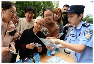 图② 10月16日,江苏省镇江市公安局民警来到官塘桥街道远洋社区,开展“禁毒宣传社区行”活动。