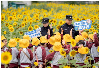 图① 10月17日,四川省绵阳市公安局游仙分局石马派出所民警在游仙区红岩电站涪江畔向小游客们讲解防范电信网络诈骗知识。