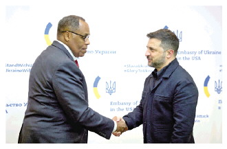 | 图为当地时间2025年10月17日,美国华盛顿,乌克兰总统泽连斯基(右)会见洛克希德·马丁国际公司总裁迈克尔·威廉姆森(左)。泽连斯基表示,他与这家生产“战斧”导弹和“爱国者”系统的美国公司官员举行了会晤,乌克兰一直要求获得这些武器以加强对俄罗斯的防御。