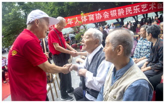 | 近年来,我国各地各部门持续实施新时代“银龄行动”,鼓励引导更多老年人和老年志愿服务组织参与志愿服务。图为重庆市云阳县银龄民乐艺术团举行“银龄行动”送文化进社区活动。 CFP供图 |