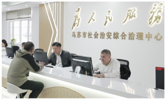 今年以来,新疆维吾尔自治区乌苏市社会治安综合治理中心不断提升矛盾纠纷预防化解法治化水平,打造矛盾纠纷化解“终点站”,确保群众每一项诉求有人办、依法办。图为一名务工人员在乌苏市综治中心接待大厅咨询劳动仲裁事宜。 本报记者 潘从武 本报通讯员 张宇航 摄