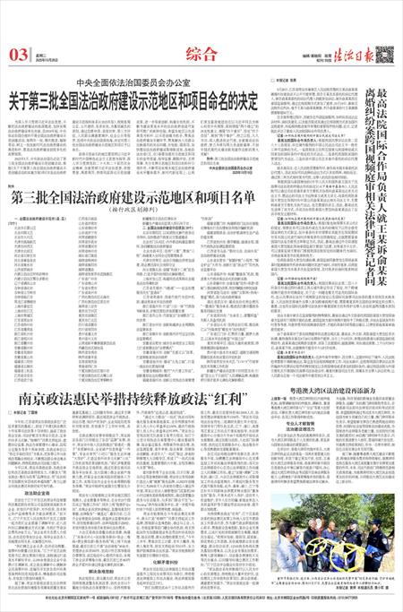关于第三批全国法治政府建设示范地区和项目命名的决定