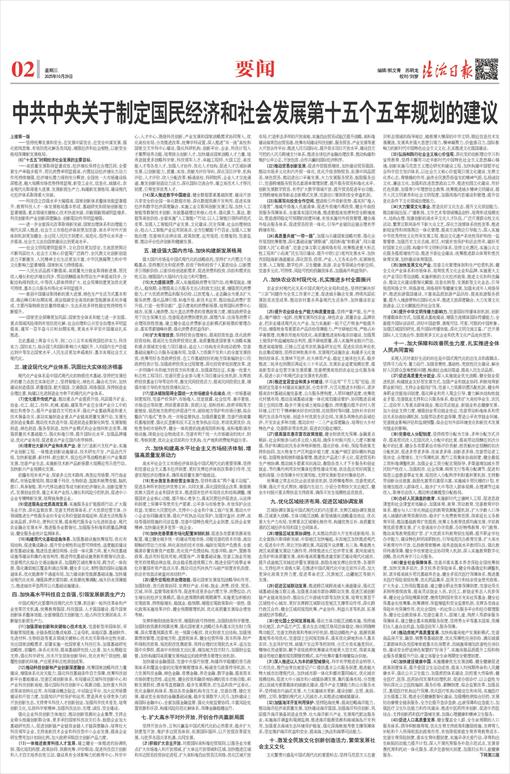 和社会发展第十五个五年规划的建议