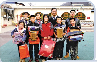 ▲ 王椰林(后排右二)和广州“爱心妈妈”来看望照顾的“山里娃”。