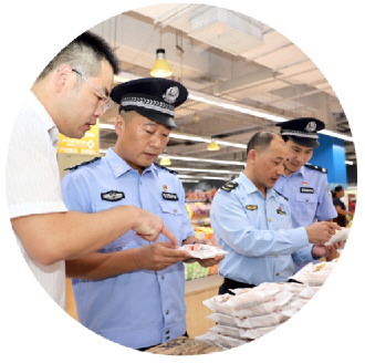 图为山东枣庄公安民警和市场监督管理执法人员在超市开展食品安全检查。 CFP供图
