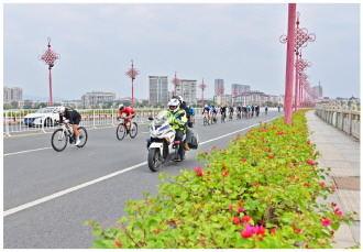 10月25日,江西省九江市警察运动会自行车赛在武宁县举行,来自九江公安系统的21支参赛队伍240余名民辅警展开激烈角逐。图为比赛现场。 本报记者 黄辉 本报通讯员 熊遥 摄