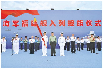 蔡奇、张国清出席福建舰入列授旗仪式。张升民主持仪式。