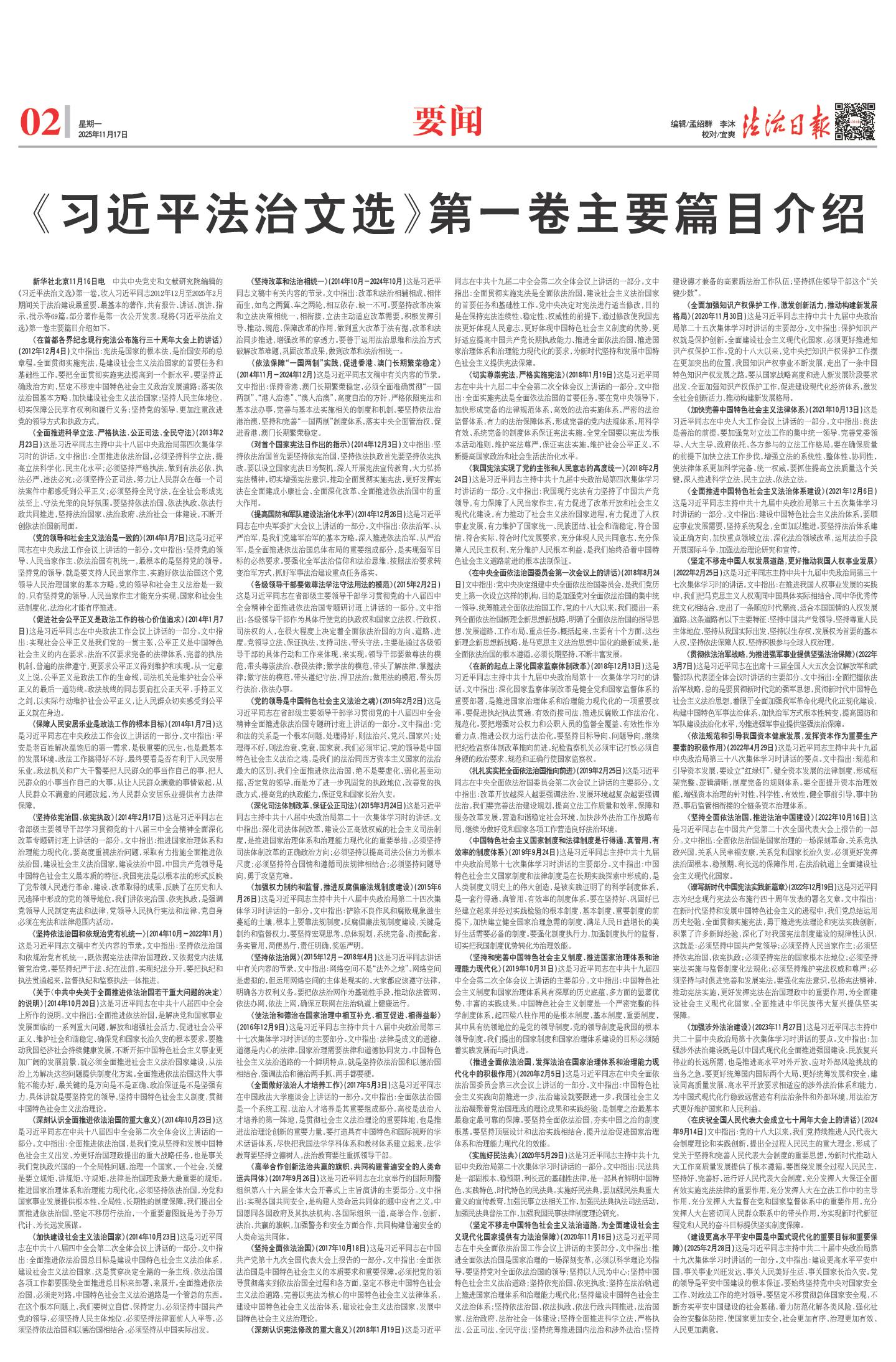 《习近平法治文选》第一卷主要篇目介绍
