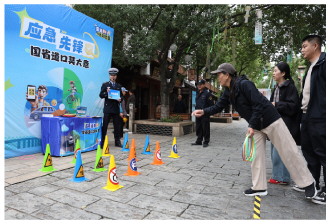 图② 由江西省公安厅交通管理总队主办,吉安市公安局、吉安县政府承办的江西省“三零一戴”美丽乡村行巡回宣传活动近日走进吉安县,营造共同关注交通安全、共享文明交通的良好氛围。图为民警通过套圈游戏引导村民学习交通安全知识。 本报记者 黄辉 本报通讯员 肖遂冬 摄
