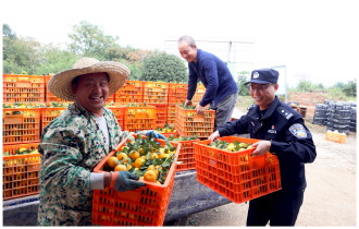 近日,江西省分宜县公安局城西派出所民警主动将警务服务延伸至田间地头,在开展治安巡逻、纠纷调解、反诈宣传的同时,帮助果农解决急难愁盼问题。图为民警在分宜镇水北村蜜橘种植基地开展助农活动。 本报记者 黄辉 本报通讯员 黄小军 摄